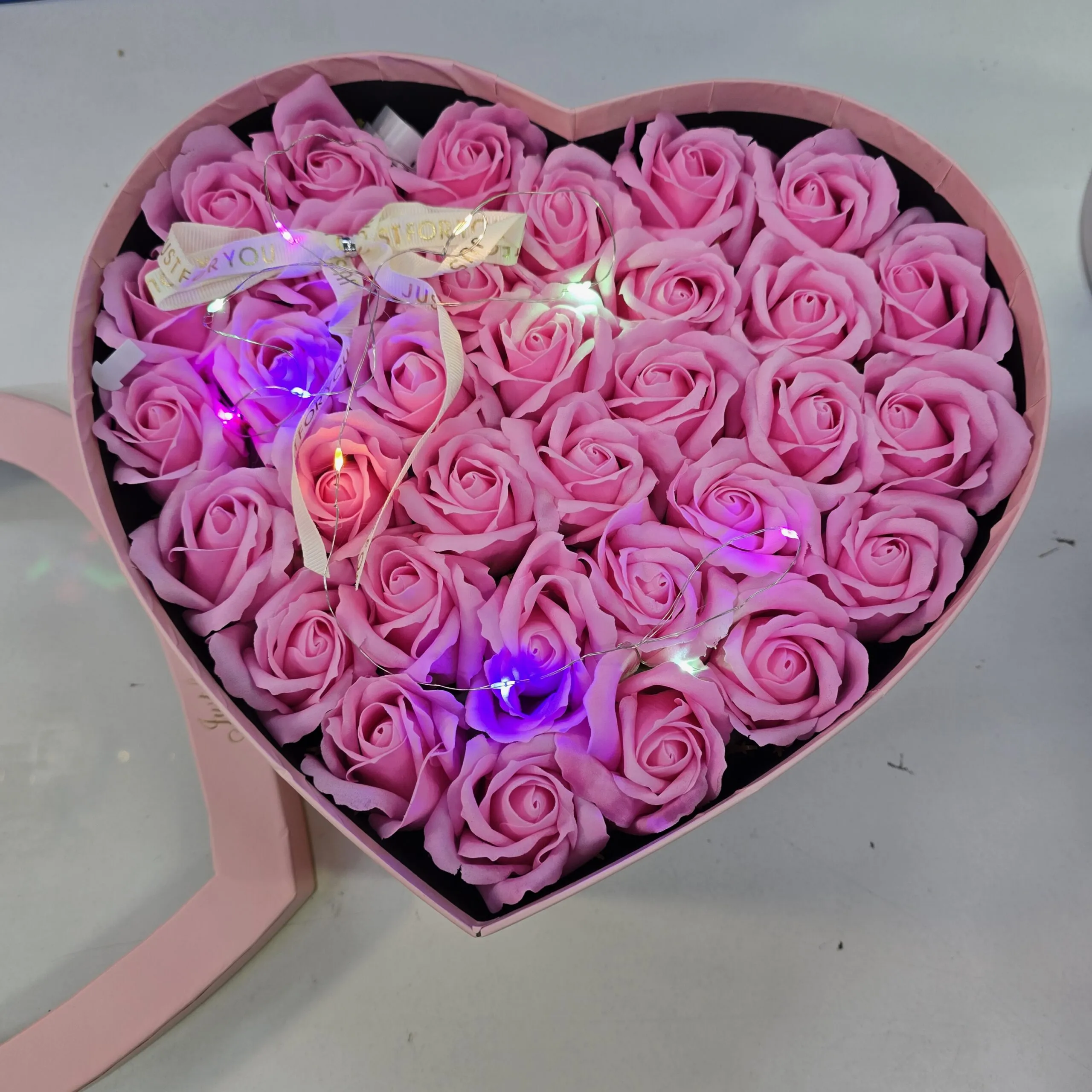 Дуже гарний набір! Брав на річницю – дружина була щаслива. Стильна коробка, троянди пахнуть приємно, і головне – цей подарунок залишиться надовго.
